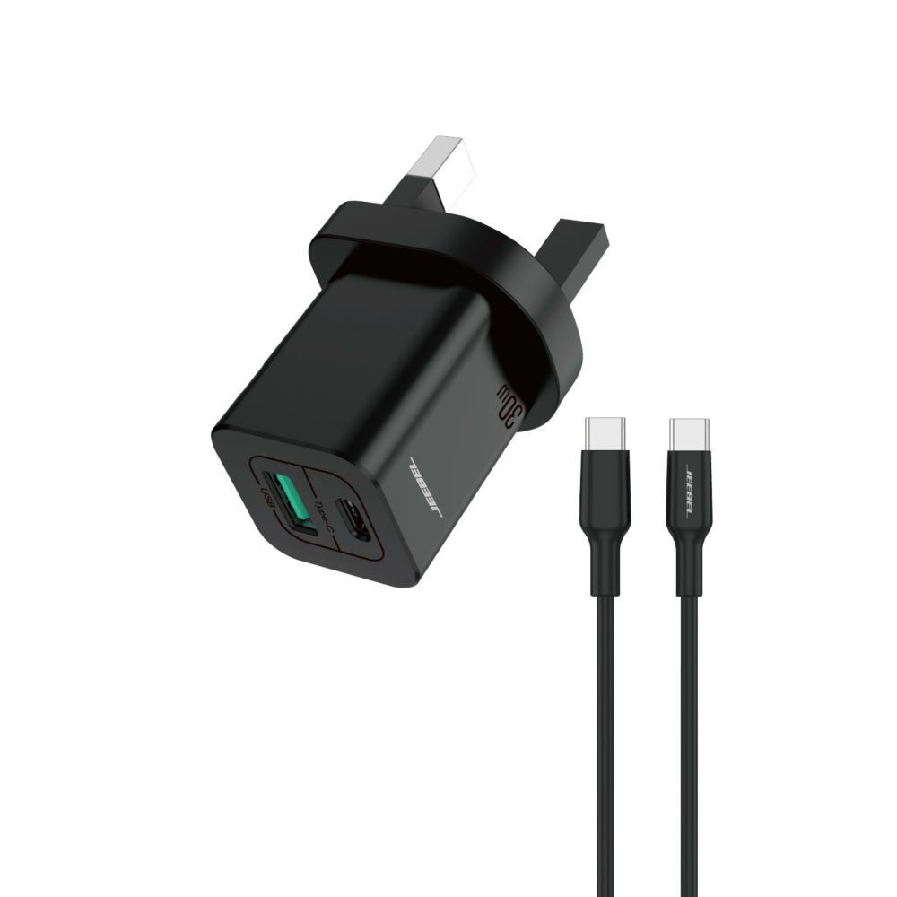 احتفظ بتجربة شحن سلسة وقوية في المنزل أو أثناء السفر مع هذا الشاحن من Jeebel B362، المزود بكابل USB‑C مدمج لتوفير شحن سريع بأمان وجودة عالية.